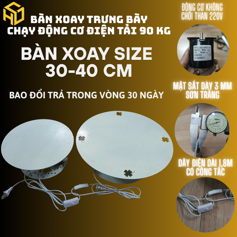 🔹 BÀN XOAY TRƯNG BÀY CHỊU TẢI NẶNG 90KG – ĐỘNG CƠ ĐIỆN KHÔNG CHỔI THAN – MẶT THÉP 3MM – CHẠY LIVESTREAM 24/24