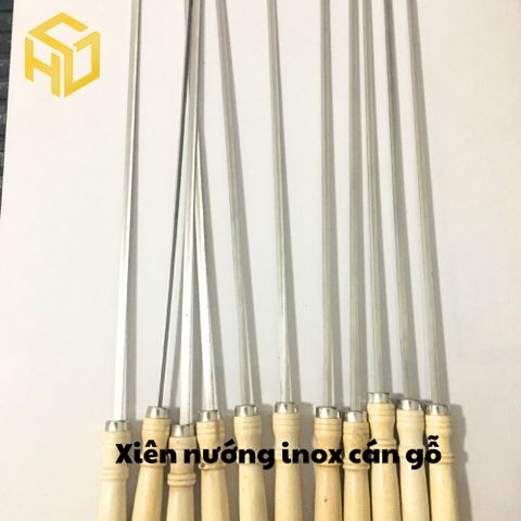 🔥 XIÊN NƯỚNG INOX CẠNH DẸT CÁN GỖ 34CM – DÀI 24CM TỪ CÁN 🔥