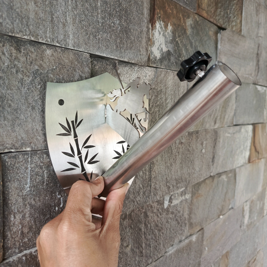 Điểm nhấn nổi bật của sản phẩm nằm ở hình ảnh cây tre Việt Nam và Anh hùng Thánh Gióng, được cắt CNC sắc nét trên nền inox dày, mang đậm dấu ấn văn hoá – truyền thống – lòng yêu nước.